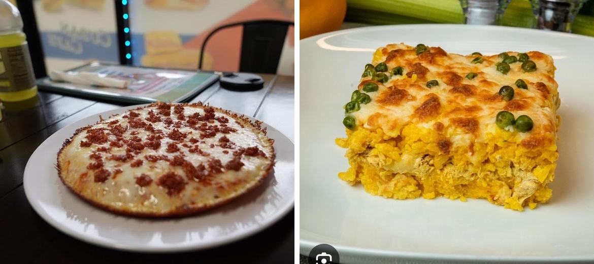 Spaguettis with pink sauce, ham and chorizo Espanol and finished with glazed cheese.